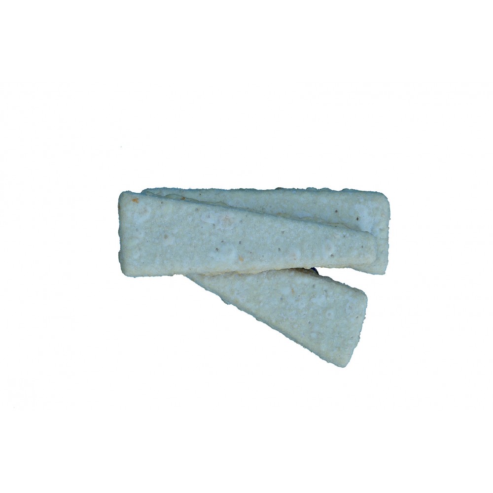 Filetti di merluzzo pastellati, prefritti e congelati.
