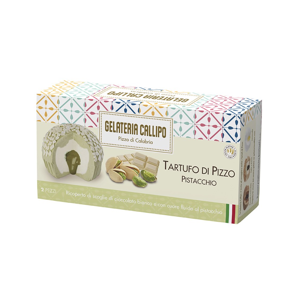 Un cuore fluido al pistacchio, dal gusto intenso, avvolto da gelato al cioccolato bianco e al pistacchio, preparato solo con latte fresco italiano e pistacchi maturati al caldo sole della Sicilia.
