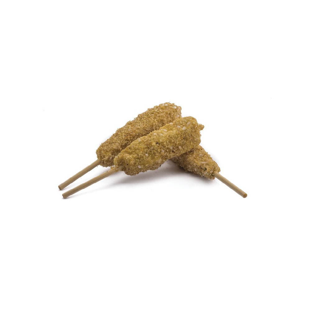 Mini Spiedini di totano gigante (Dosidicus gigas) panati ed aromatizzati (gusto classico) ideali per aperitivi e banchetti da gustare in punta di dita.